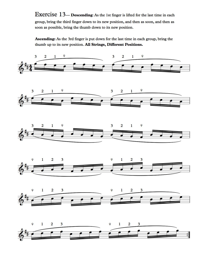 Estos 13 ejercicios que aquí aparecen se dedican a abrir la mano en la posición del pulgar, y son útiles solo después de la formación de una buena posición básica.