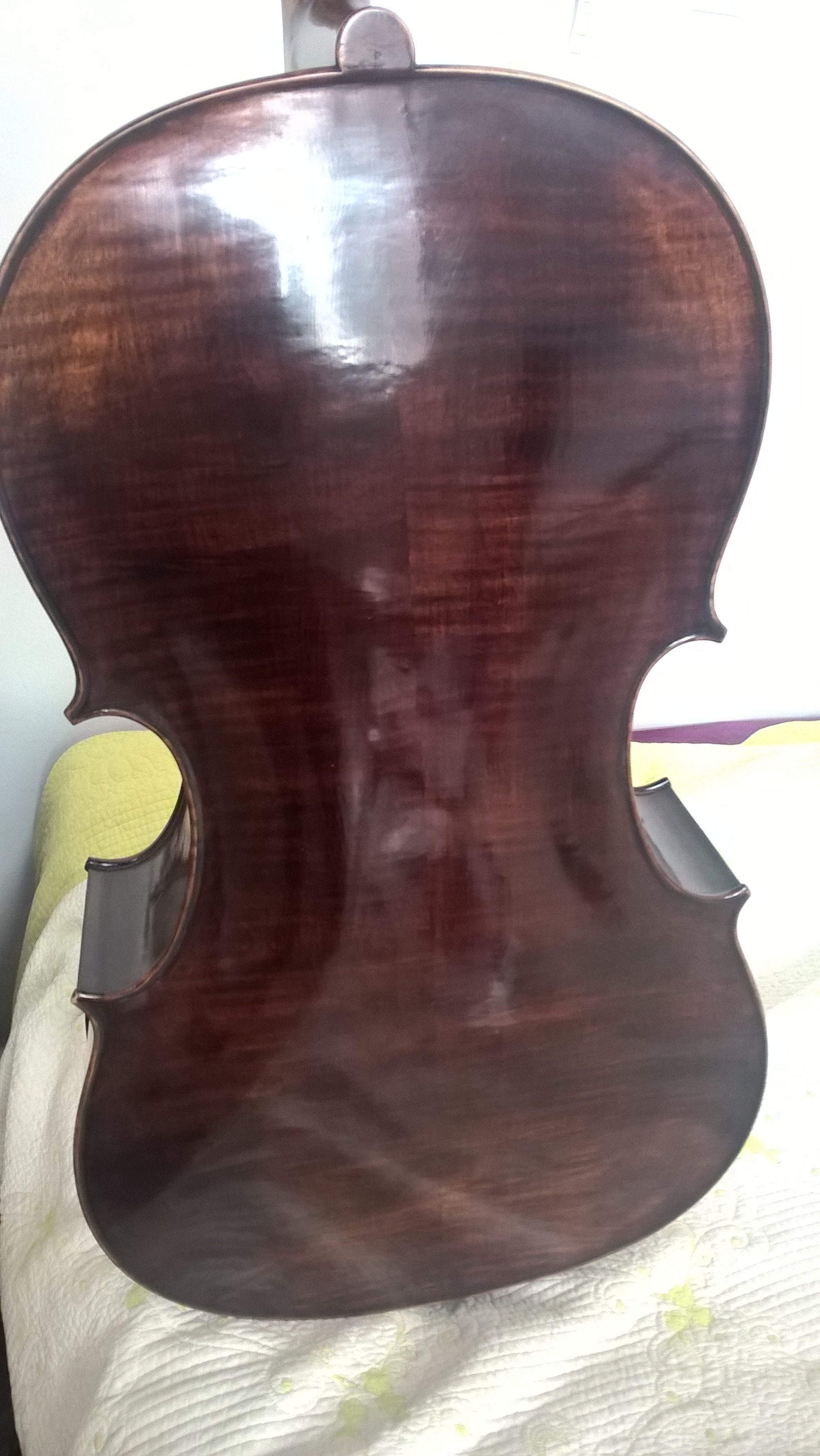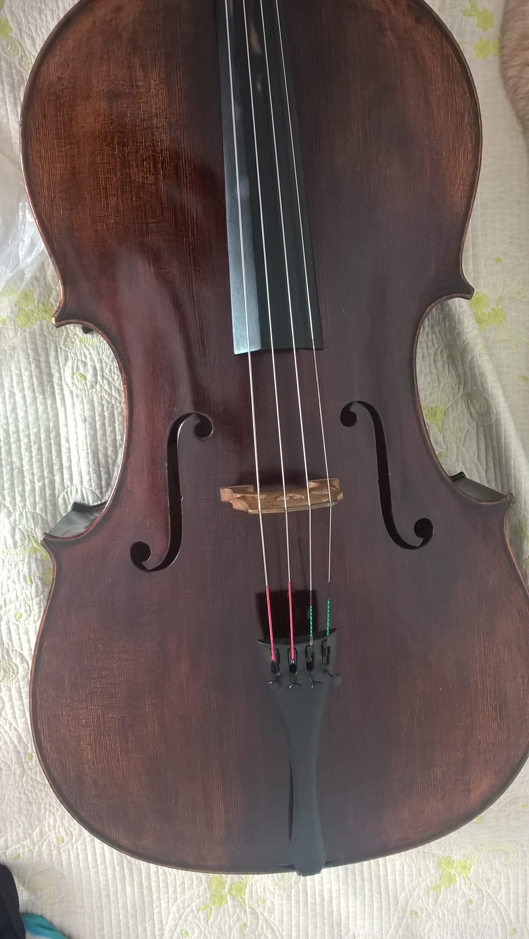 Es un cello del año 2015, lo trajeron de EE.UU., donde los hace un luthier chino en su taller. Las maderas son las tradicionales: Arce y Abeto y la puesta a punto fue hecha el año pasado con puente y alma nuevos (Puente francés Aubert). El precio es u$d 3.500.