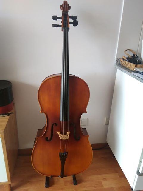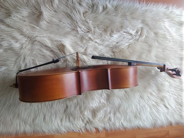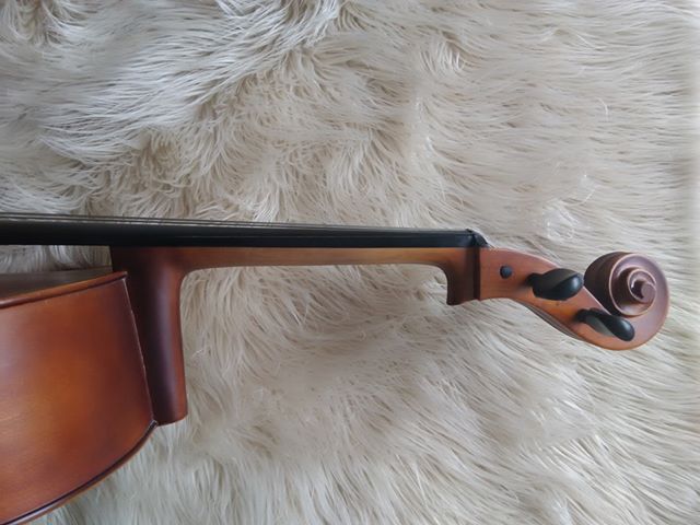 Todo de Maderas Macizas: Tapa de pino abeto. Fajas y fondo de maple. Incluye Arco de madera, Funda, Soporte y Sordina Setup de Alta Calidad realizado por un Luthier especialista Tiene 1 año de uso y está en excelentes condiciones. Ningún mínimo rayón o marca en las maderas. NO permuto