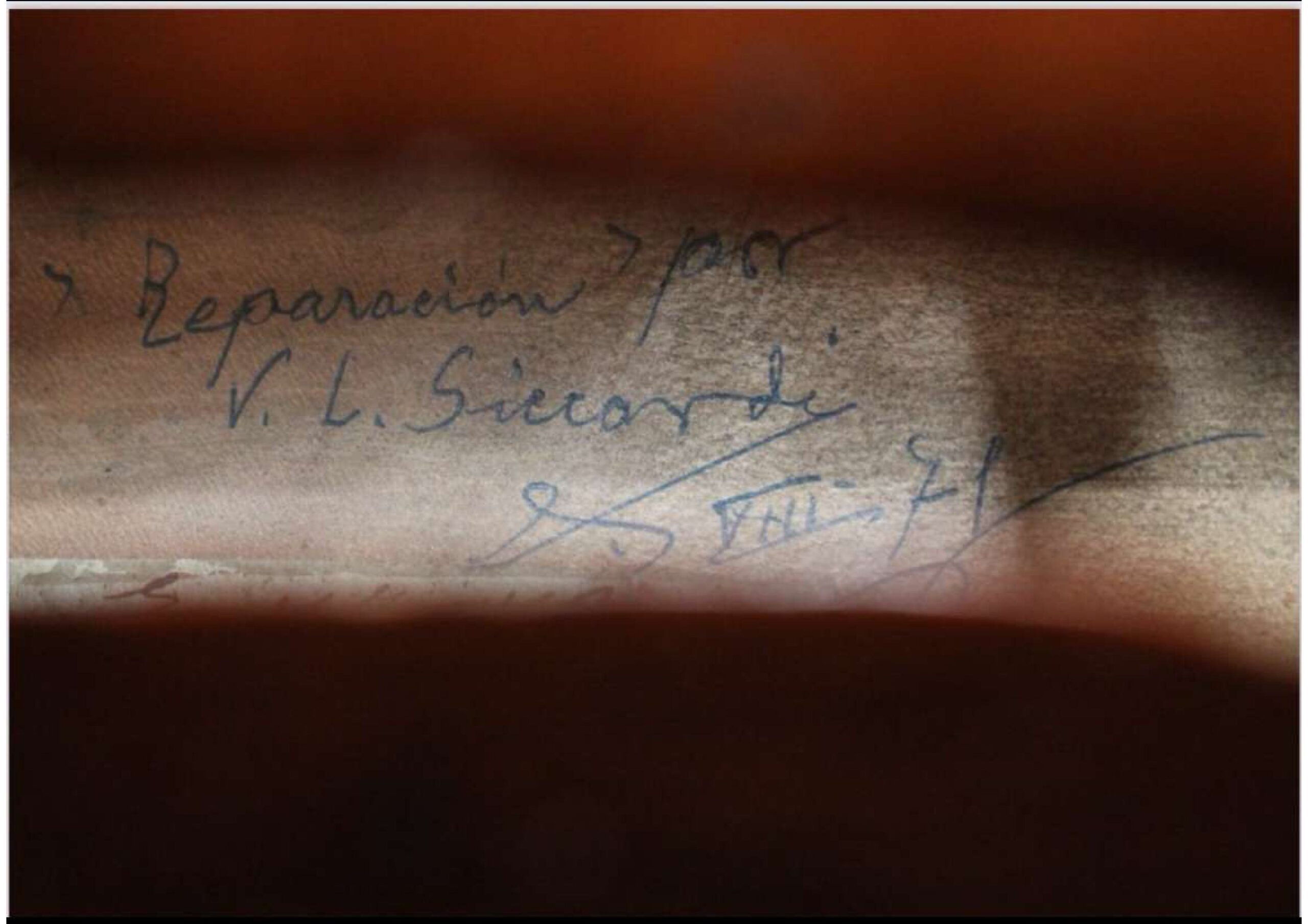 Reparado por el Luthier Victor L Siccardi en 1971